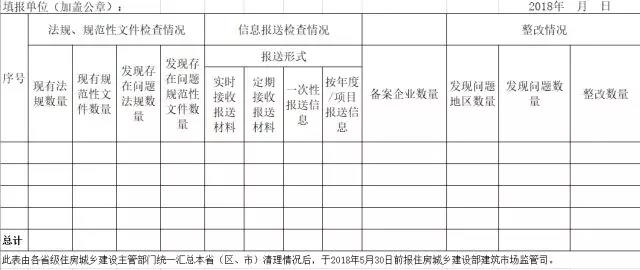 (一)自查階段。2018年4月2日至5月21日,各省級(jí)住房城鄉(xiāng)建設(shè)主管部門對(duì)照本通知確定的檢查內(nèi)容組織本地區(qū)自查,及時(shí)發(fā)現(xiàn)和整改有關(guān)問題,提出相應(yīng)對(duì)策措施,并于5月30日前將本地區(qū)自查報(bào)告及建筑企業(yè)跨省承攬業(yè)務(wù)監(jiān)督管理專項(xiàng)檢查匯總表(詳見附件)報(bào)住建部建筑市場監(jiān)管司。
