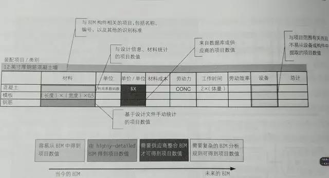 需要特別注意的是BIM僅能為估價(jià)師提供所需要計(jì)算造價(jià)的一部分信息,而BIM部件則提供工程量信息,但經(jīng)常缺乏詳細(xì)的人工費(fèi)、暫定工日,材料費(fèi)和機(jī)械臺(tái)班費(fèi)的自動(dòng)計(jì)算。