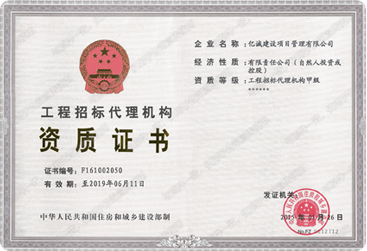 億誠建設項目管理有限公司作為專業(yè)的招標代理服務機構(gòu),于2014年取得中華人民共和國住房與城鄉(xiāng)建設部頒發(fā)的工程招標代理甲級資質(zhì)證書,此后又相繼取得了室內(nèi)裝飾裝修工程招標代理貳級機構(gòu)資格證書、中央投資項目招標代理機構(gòu)預備級資格證書、入選政府采購代理機構(gòu)名單。